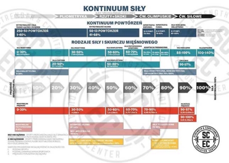 Wykres “Kontinuum Siły” zawiera wszystkie możliwe rodzaje siły mięśniowej, rodzaje skurczu, procenty intensywności, prędkości poruszania się ciężaru oraz adaptacje treningowe pod konkretne rodzaje dyscyplin sportowych. Celem tego schematu jest pełen obraz doboru parametrów treningowych oraz ćwiczeń pod konkretny cel sportowy. Jest to jedyny w swoim rodzaju wykres na świecie stworzony oryginalnie przez Mirosława Babiarz. Wykres dostępny jest w dwóch językach: polski oraz angielski.